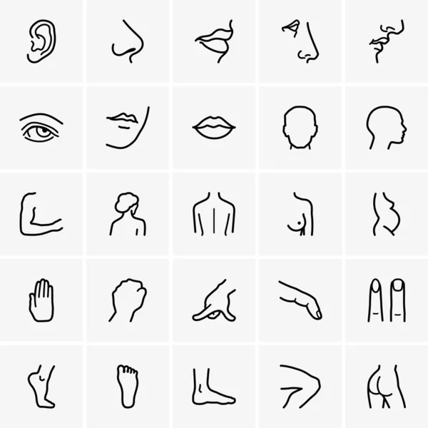 Parti del naso umano occhi bocca e orecchie impostano la raccolta di illustrazioni vettoriali | Vettore Premium