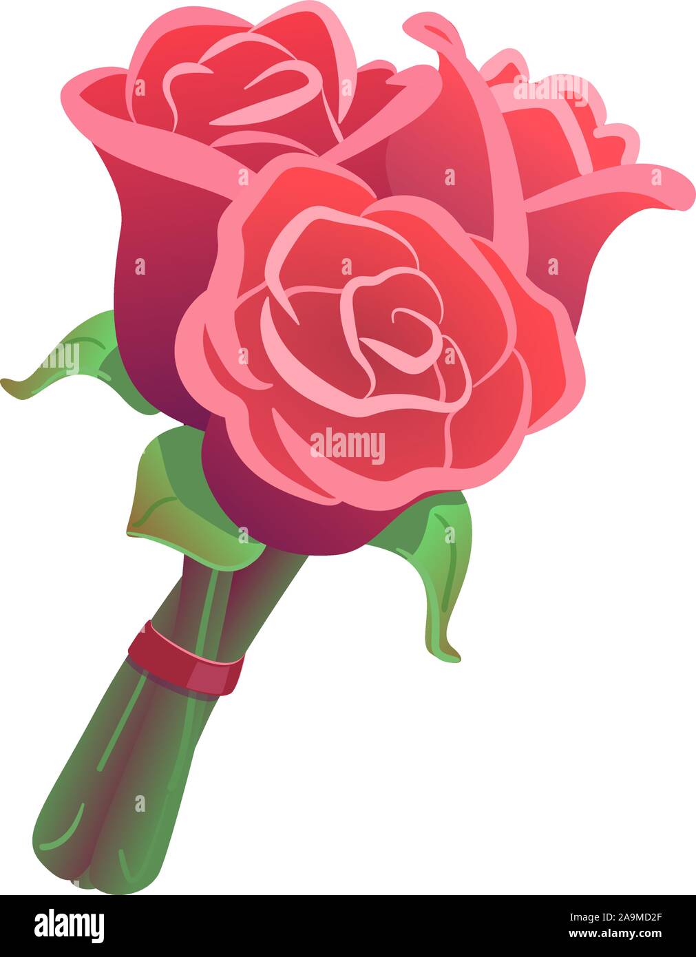 Tre Rose bouquet isolato su sfondo bianco. Fiori clipart per data, celebrazione, il giorno di San Valentino. Romantico regalo di nozze illustrazione. Rosa, rosy mazzetto con nastro rosso. Disegno floreale vettore Immagine