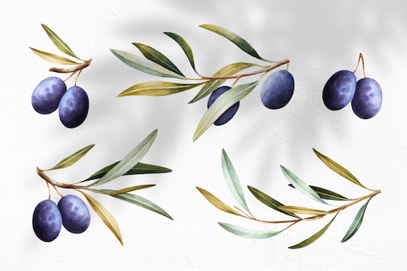 Rami di ulivo dipinti a mano clip art ad acquerello Clipart - Etsy Italia