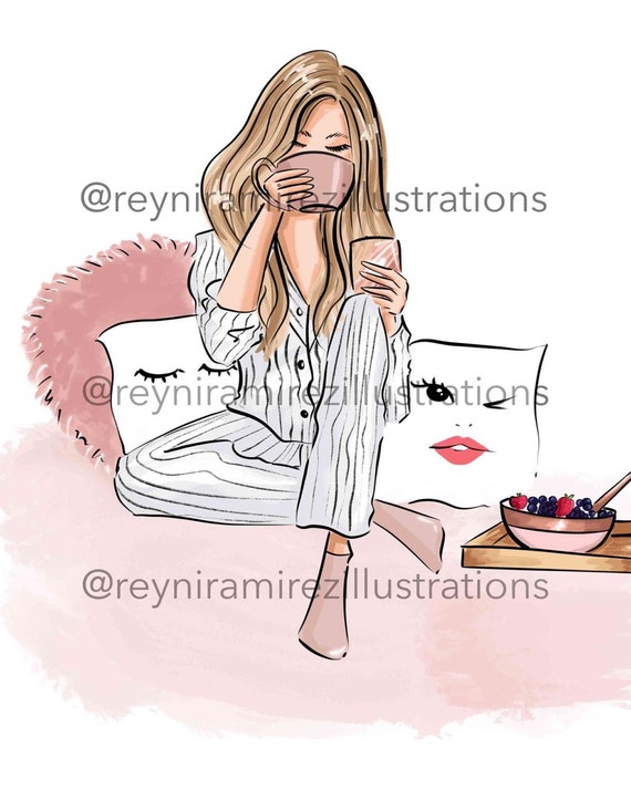 Clipart ragazza bionda, clipart per la colazione, clipart accogliente, clip art pijamas, clipart di moda, arte stampabile, download istantaneo, stampa di moda - Etsy Italia