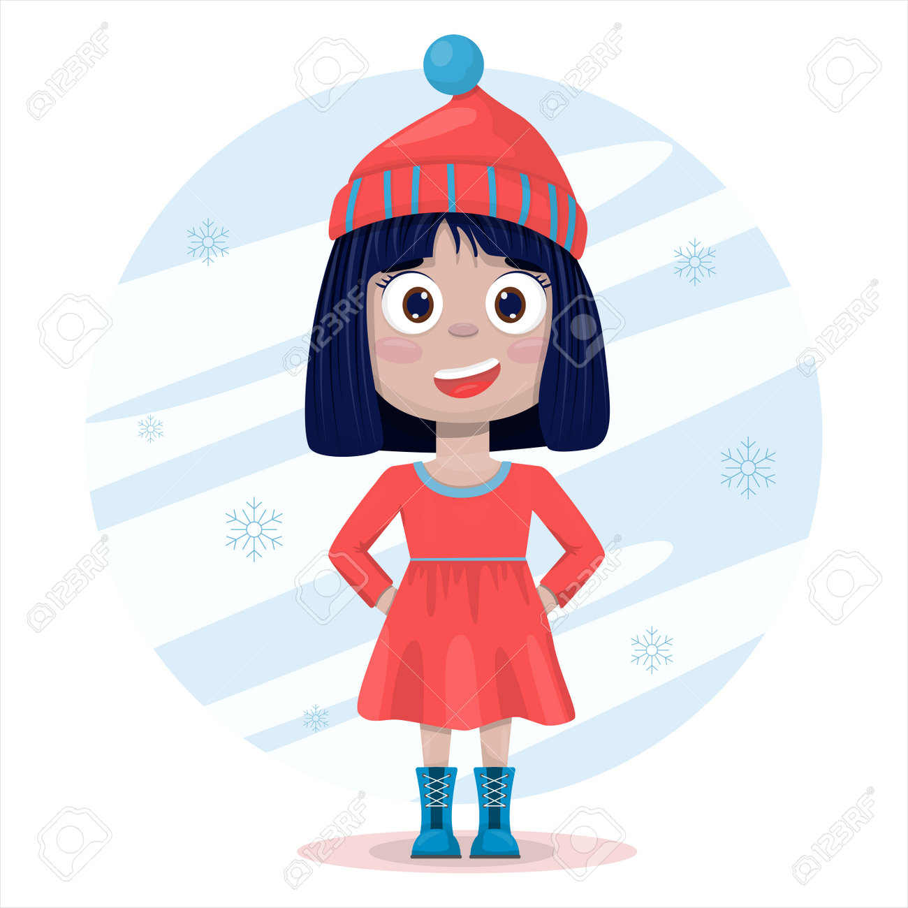 SVG, Vettoriale - Ragazza Di Vettore Piatto Ute Sorriso. Donna Graziosa Del Fumetto In Vestito Con Priorità Bassa. Un Bel Bambino Allegro. Abiti Per Diverse Stagioni. Image 184073066