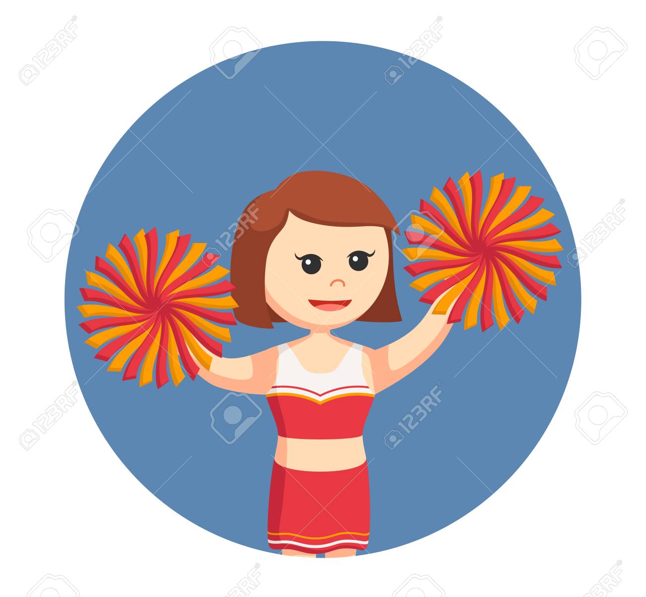 SVG, Vettoriale - Ragazza Pon Pon Con Il Vestito Rosso Nella Priorità Bassa Del Cerchio. Image 73724026