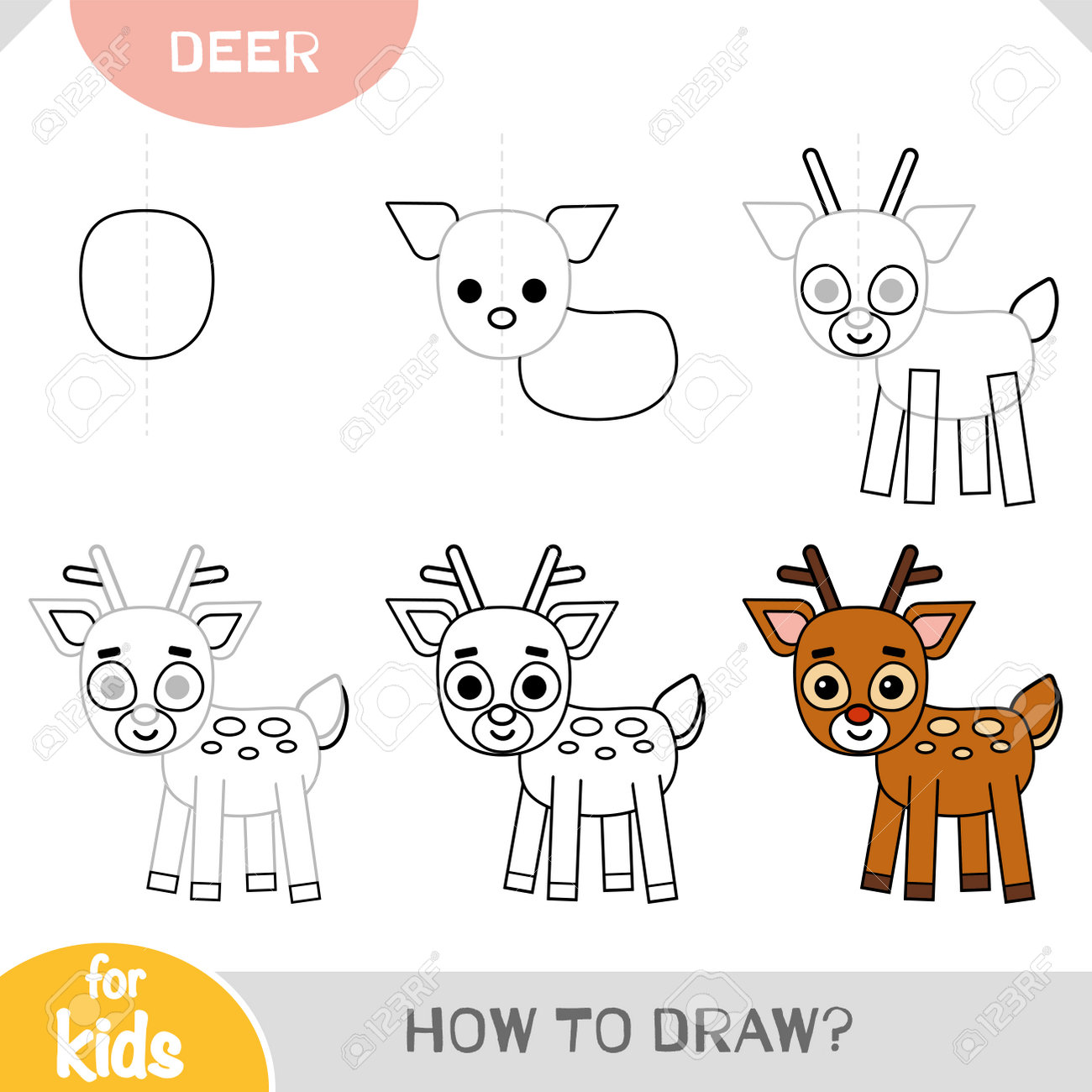 SVG, Vettoriale - Come Disegnare Un Cervo Per Bambini, Tutorial Di Disegno Passo Dopo Passo, Una Semplice Guida Per Imparare A Disegnare. Image 191468713