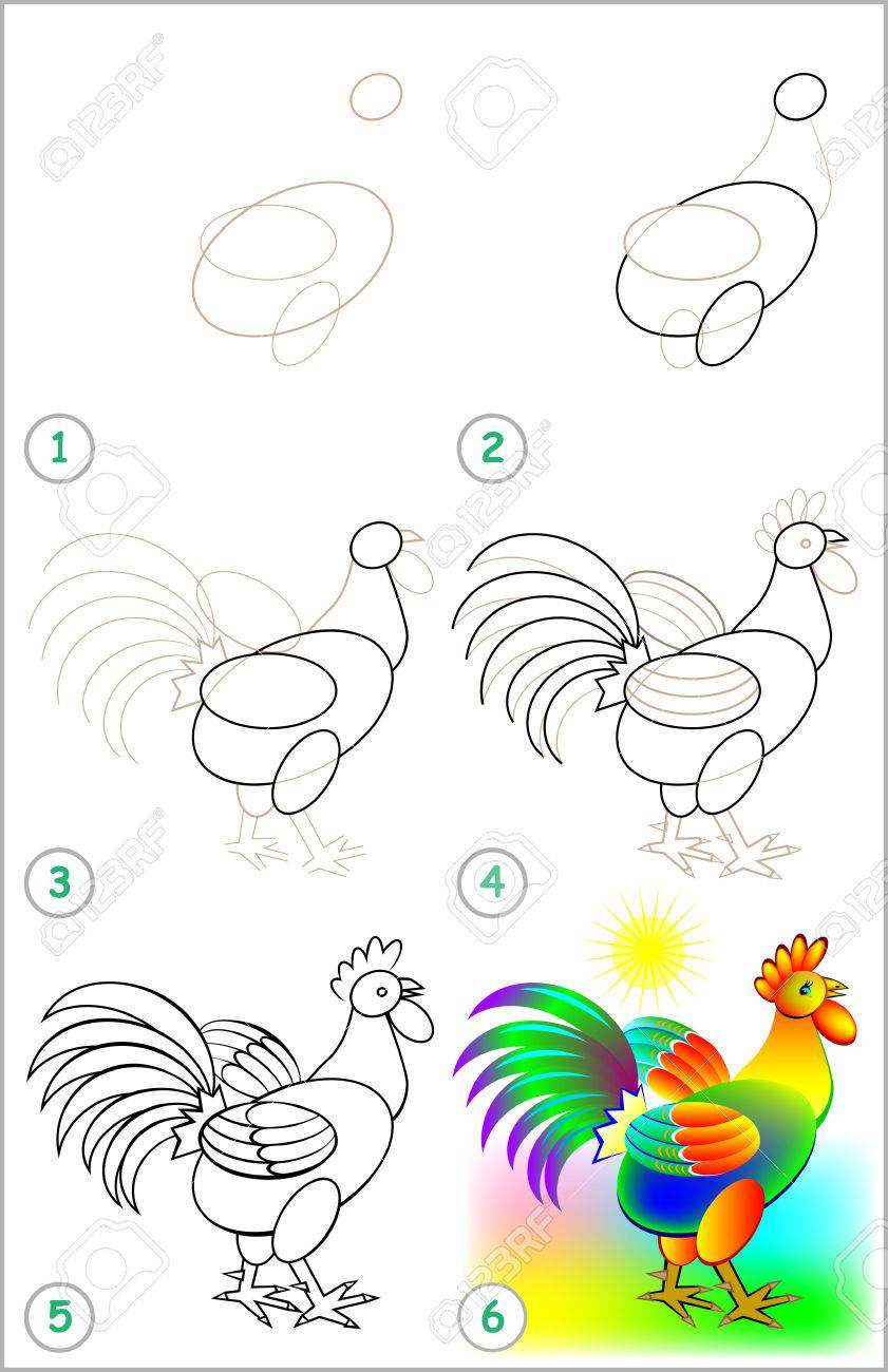 SVG, Vettoriale - La Pagina Mostra Come Imparare Passo Dopo Passo A Disegnare Un Gallo. Sviluppare Le Abilità Dei Bambini Per Disegnare E Colorare. Immagine.. Image 71803378
