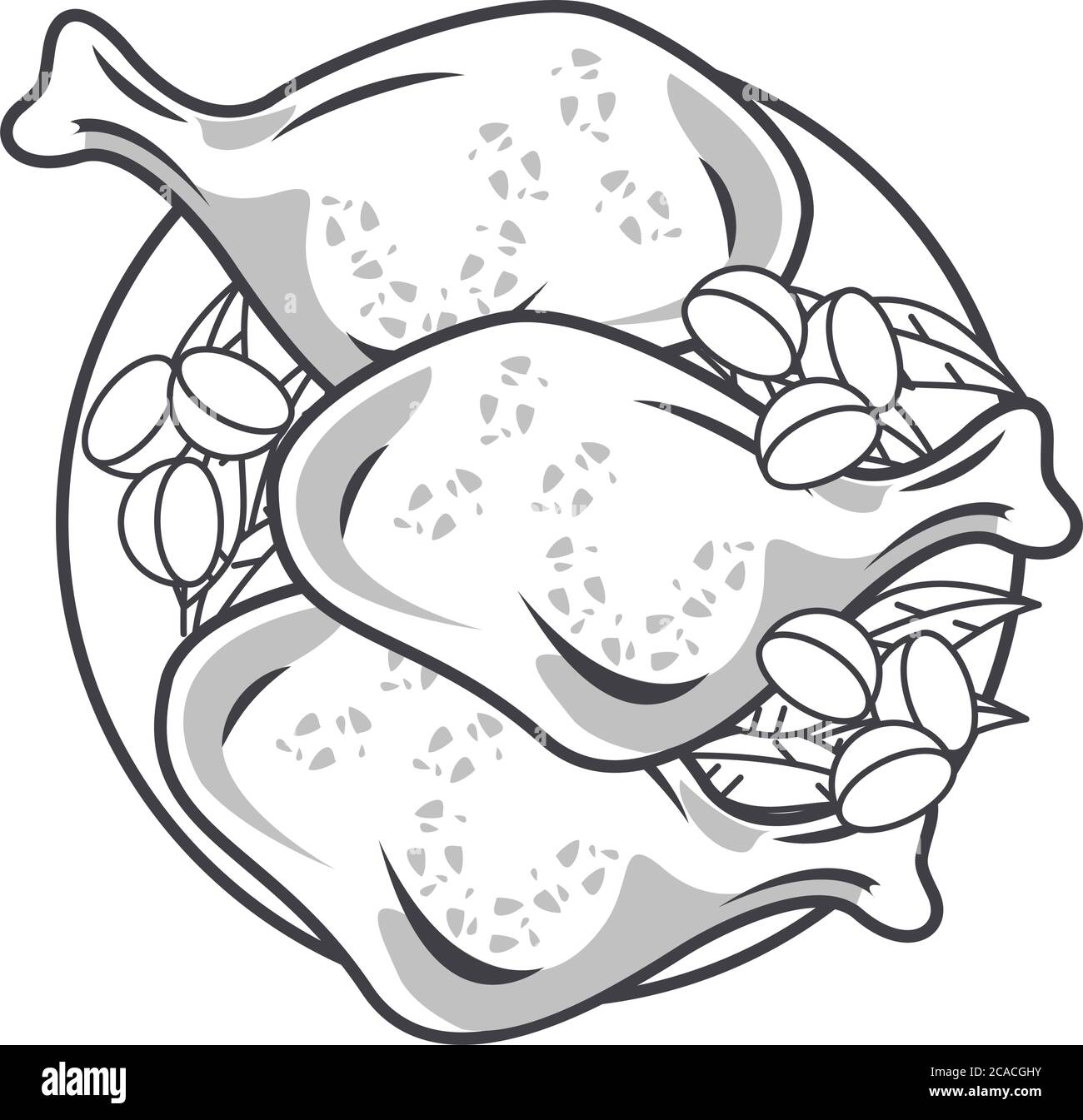 Plato Con Pollo Muslos Aislado Icono Vector Ilustración Diseño Ilustraciones svg, vectoriales, clip art vectorizado libre de derechos. Image 91075892