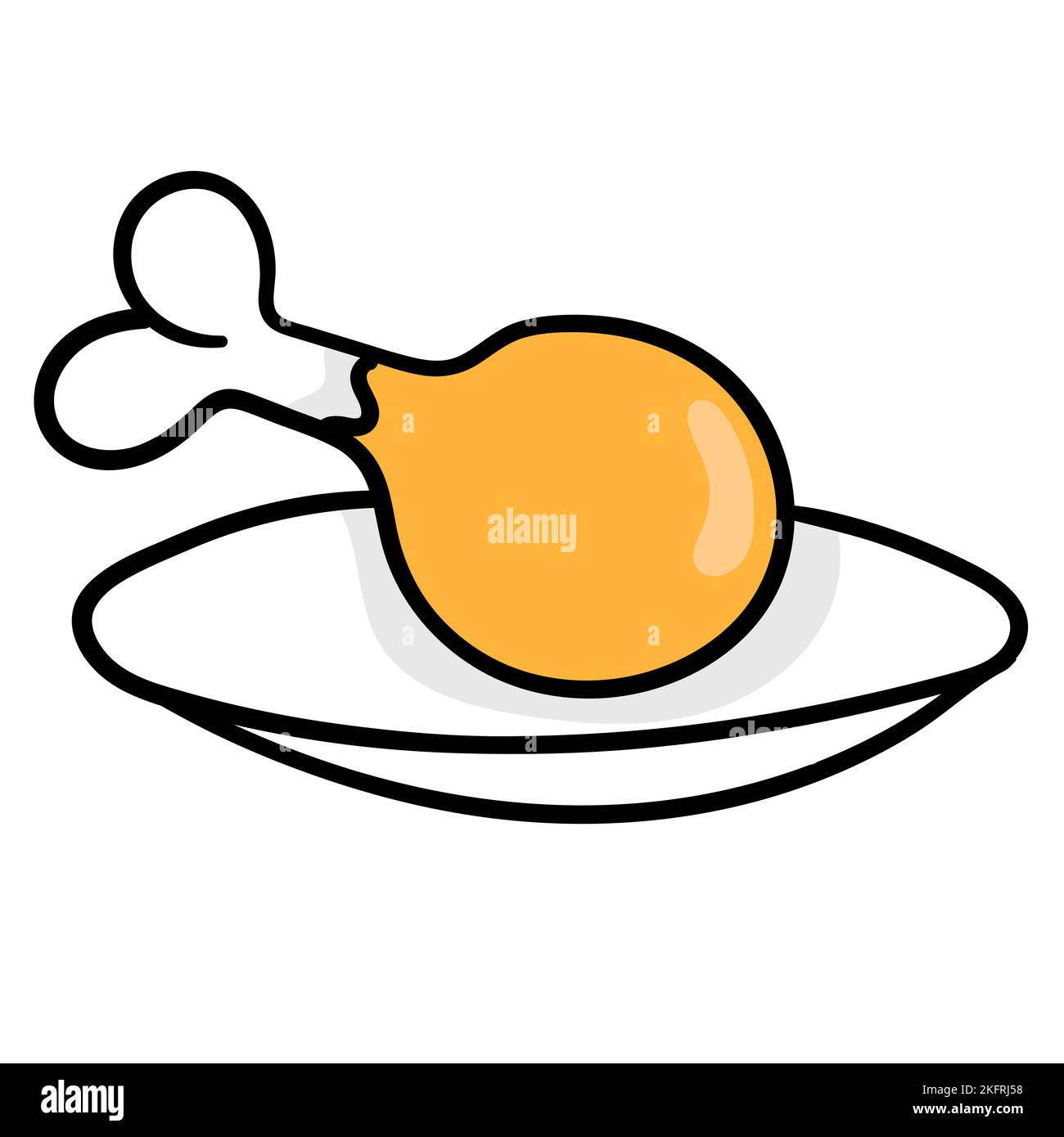 Un disegno vettoriale di una coscia di pollo fritta su un piatto su sfondo bianco Immagine e Vettoriale - Alamy