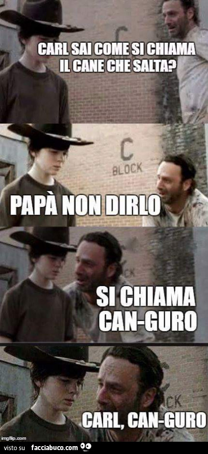 Carl sai come si chiama il cane che salta? Papà non dirlo. Si chiama can-guro. Carl, can-guro - Facciabuco.com