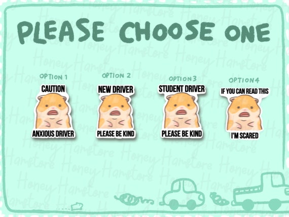 NEW weather & Water Proof Cute Hamster Meme Bumper Sticker Nervous Anxious Student Driver New Driver Car Decal Funny Car Sticker - Etsy