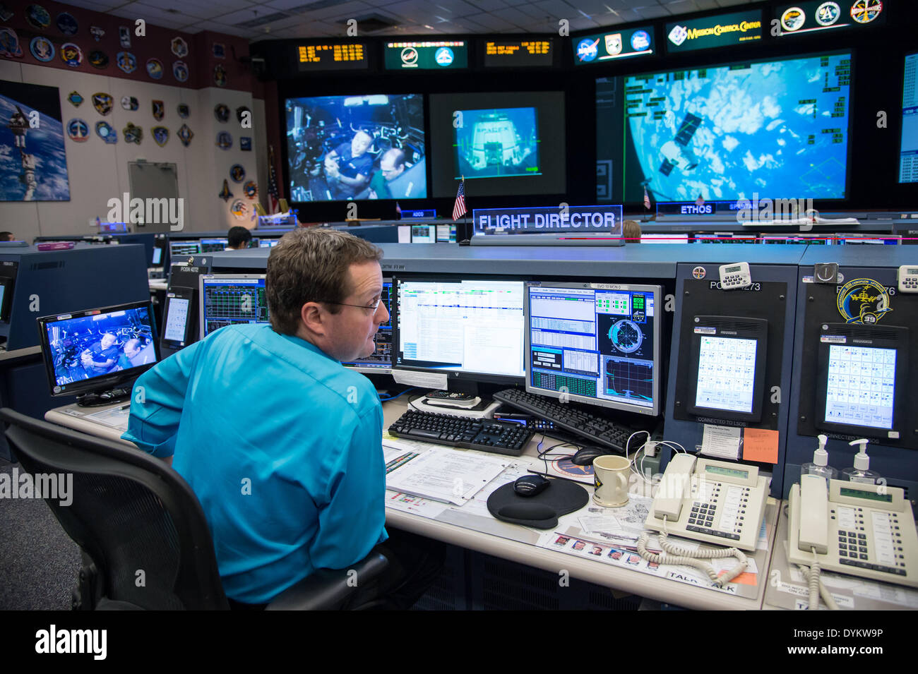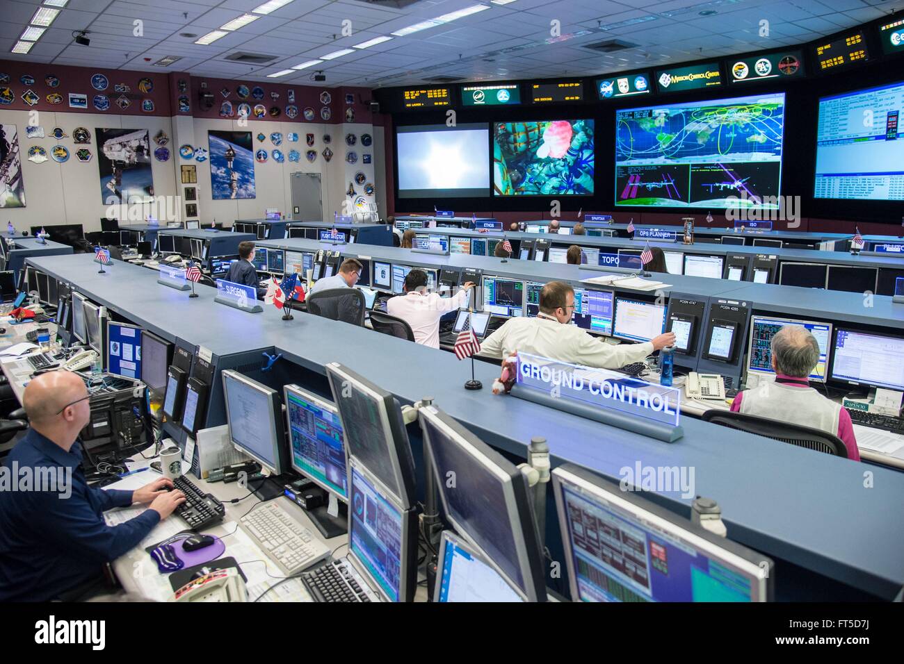 Centraline guardando gli schermi dei computer lavora al nuovo stato della tecnica la NASA Mission Control Center presso il Johnson Space Center Foto stock - Alamy