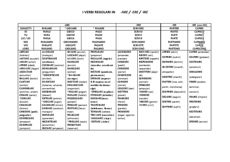 Schema Irregolari Presente Indicativo | PDF | Gramática | Morfología Lingüística