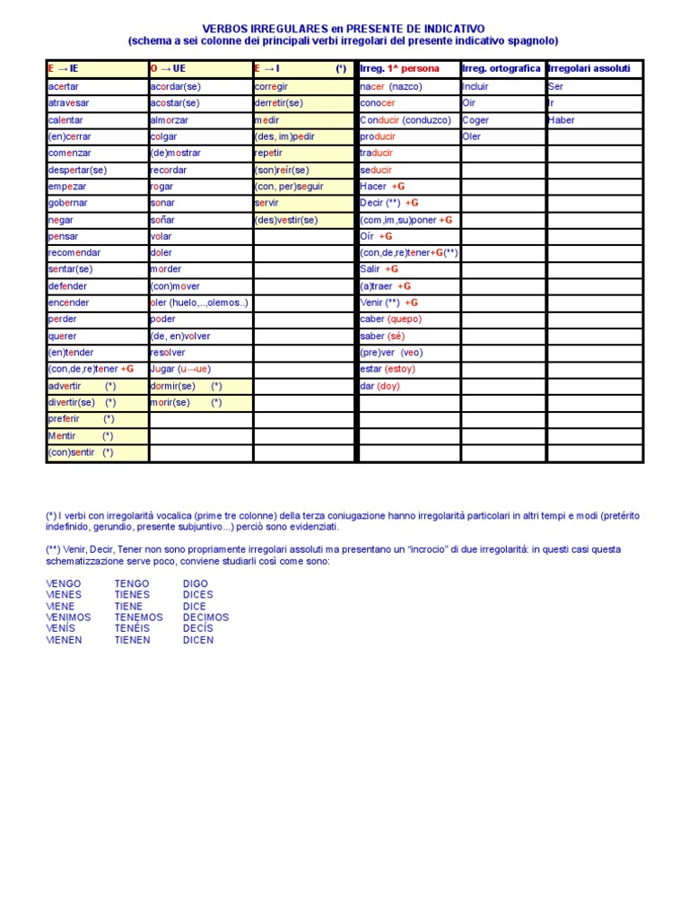 Blog di Spagnolo: Verbos con cambios vocálicos (1A y 1B)