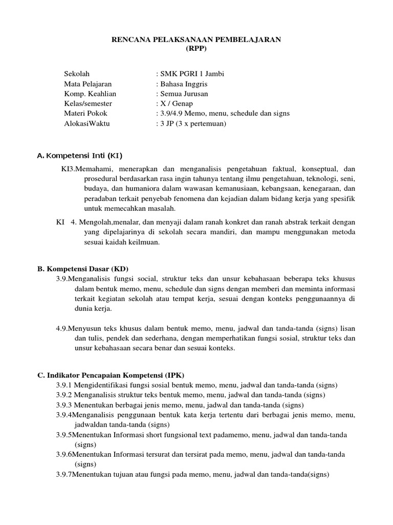 MATERI MEMO, SCHEDULE, SIGNS, and MENU KD 3.9 | PDF