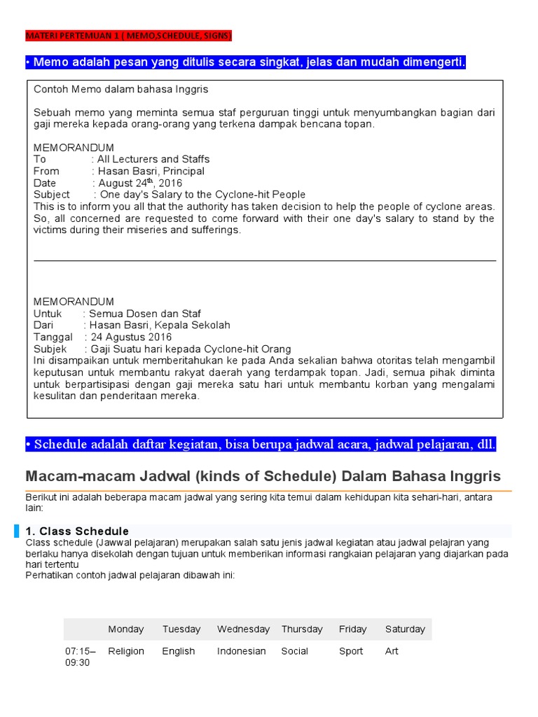Materi Ajar Memo, Menu, Schedule, Sign | PDF | Symbols