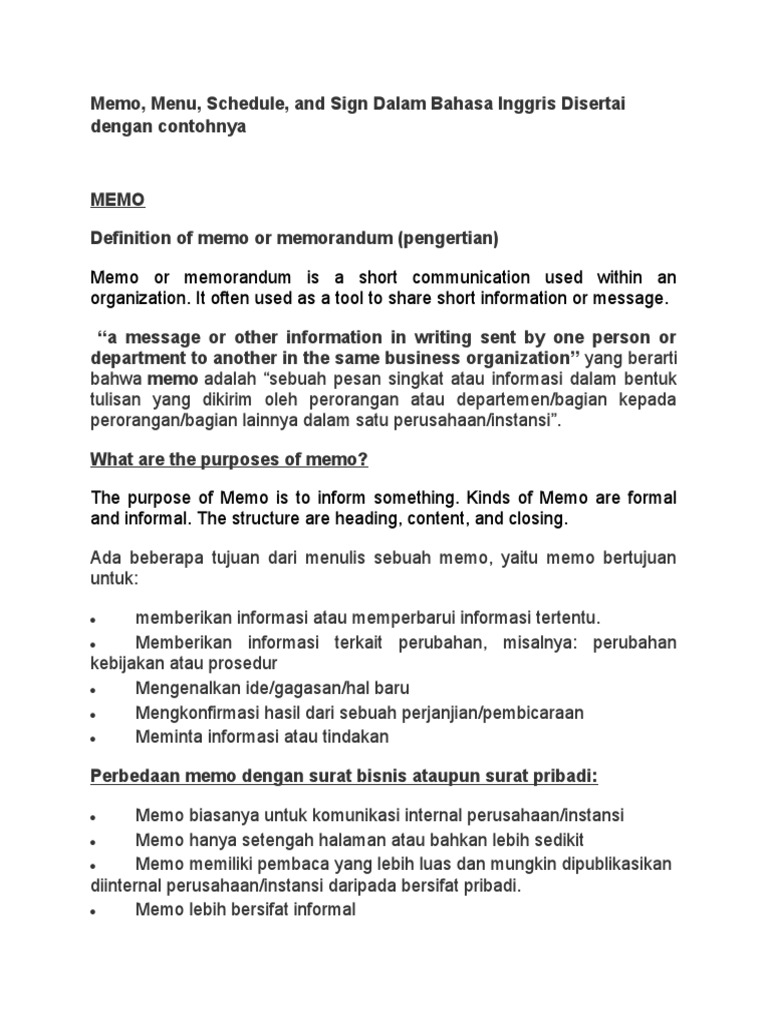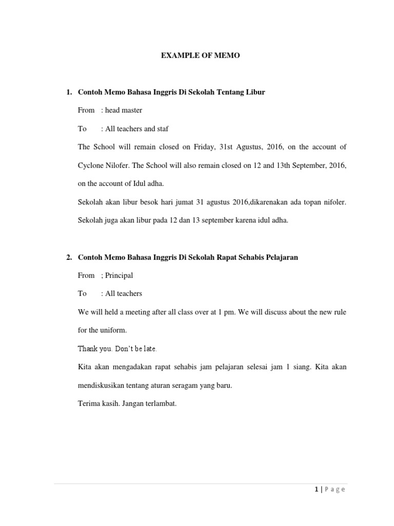 8 Contoh Memo dalam Bahasa Inggris Beserta Artinya | Bahasa inggris, Komunikasi, Bahasa