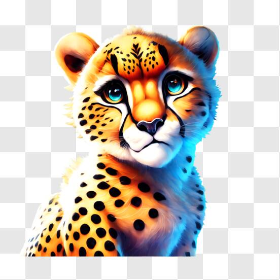 Scarica Arte colorata di ghepardo con occhi blu e schizzi di vernice PNG Online - Creative Fabrica