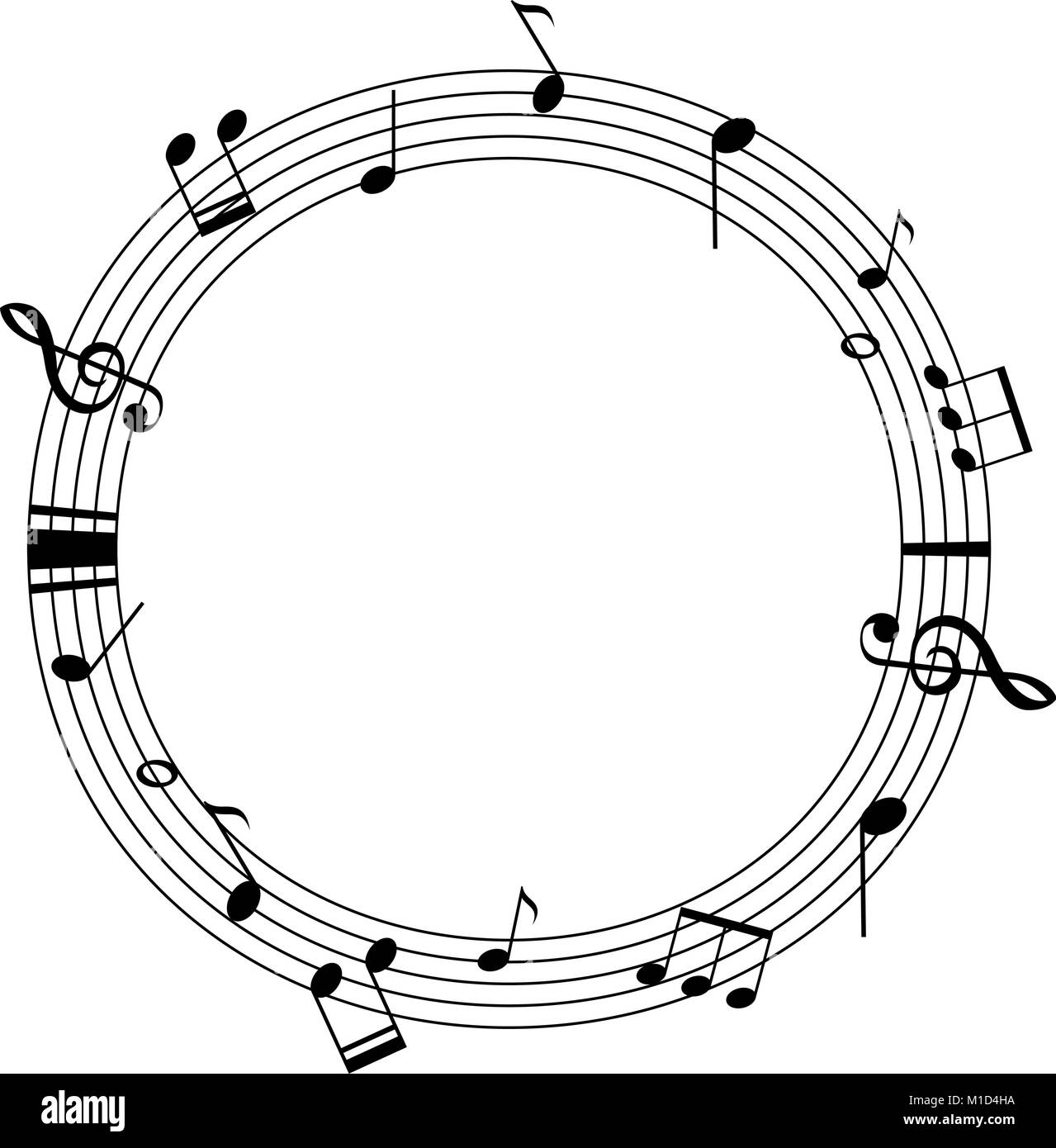 Cornice rotonda modello con note musicali su scale illustrazione Immagine e Vettoriale - Alamy