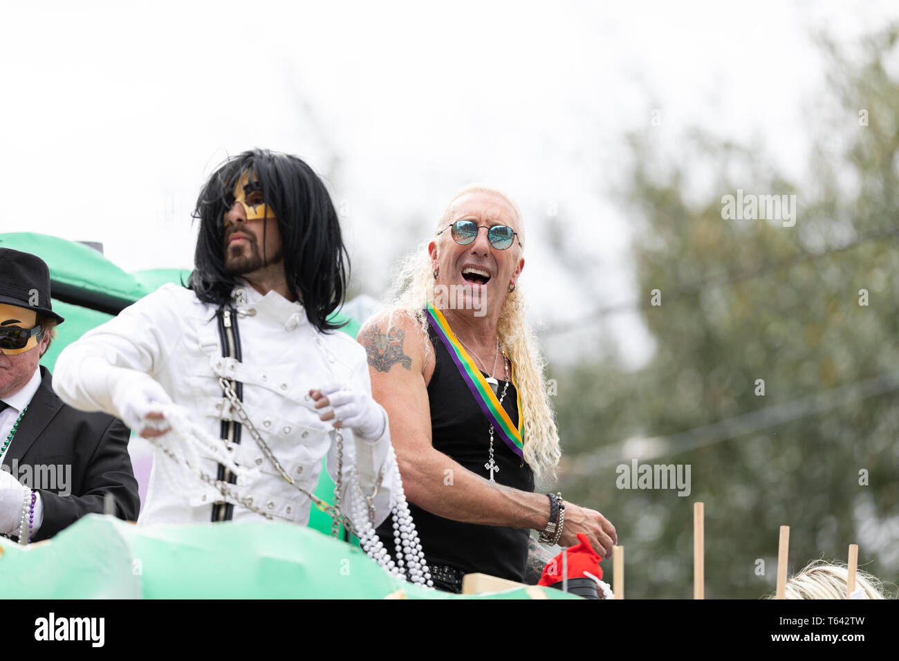 New Orleans, Louisiana, USA - February 23, 2019: Mardi Gras Parade, Dee Snider on a float throwing beads to the spectators during the mandi gras parad Stock Photo - Alamy