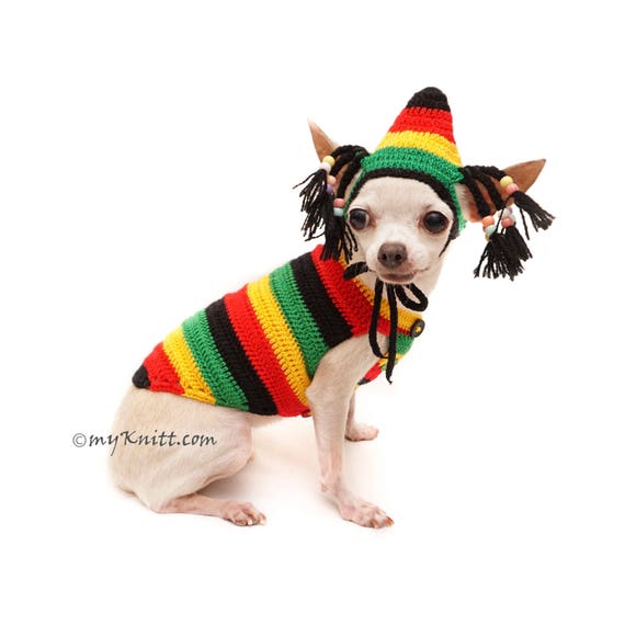 Rasta Mania Dog Costumes, Rastafarian Hat, Rasta Hat, Rasta Beanie, Dog Hat Crochet, Chihuahua Clothes DF117 Myknitt Free Ship - Etsy