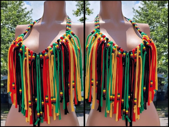 Rasta Love Fringe Kandi Bra,rave Outfit,rave Costume,rave Clothing,festival Top,festival Outfit,rasta Bra,rasta Halter, Crochet Top Fringe - Etsy New Zealand