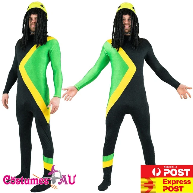 MENS JAMAICAN RASTA Hero Costume Bobsleigh Bobsled Team Sports Runner Jumpsuit £25.22 - PicClick UK