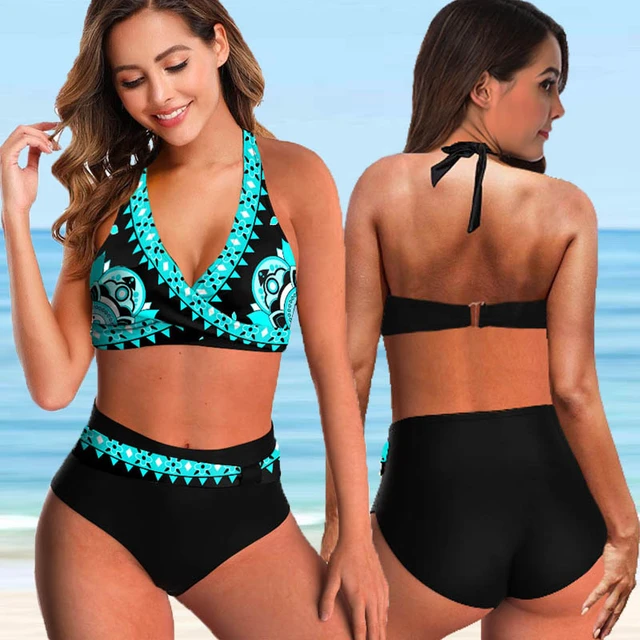 Bikini Set costume da bagno donna donna costumi da bagno costumi da bagno costumi da bagno costumi da bagno 2022 nuovo Plus Size stampato vita alta stile due pezzi - AliExpress