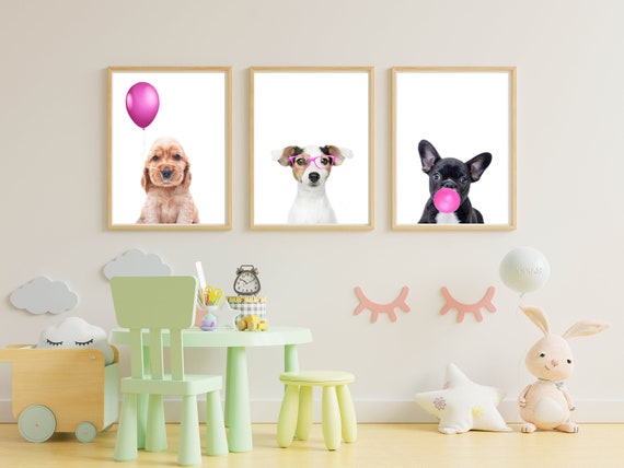 Cuccioli carini, Nursery Wall Art, Stampe fucsia per cani, Set di ...