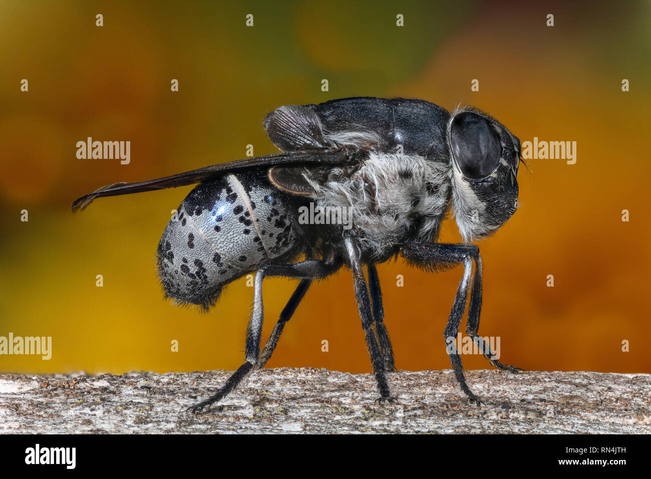 Front view of an adult female mouse botfly, Cuterebra fontinella, climbing on a plant, Boundary Bay saltmarsh, Delta, British Columbia. The larvae of Stock Photo - Alamy