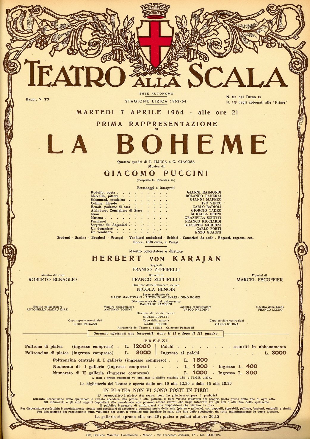 Teatro alla Scala on X: "HAPPENED AT LA SCALA: 7 APRIL... 1964 Herbert von Karajan conducts La Bohème, again in Franco Zeffirelli\