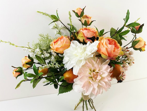 Bouquet di pesca blush e rosa bianca e dalia per matrimonio / - Etsy Italia
