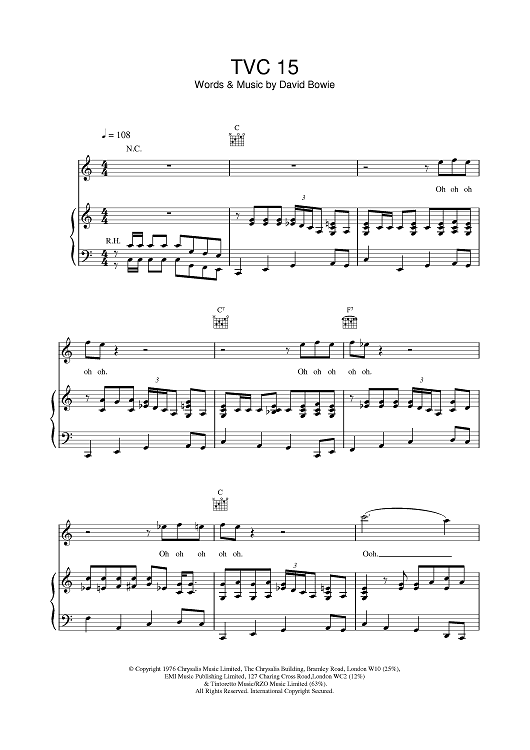 TVC15" Sheet Music by David Bowie for Piano/Vocal/Chords - Sheet Music Now