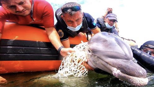 Cucciolo di delfino liberato da una rete. E la mamma ringrazia VIDEO | Notizie da TeleAmbiente TV News