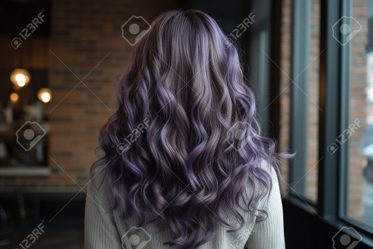 Immagini Stock - Capelli Castani Con Delicati Riflessi Lavanda Vista Posteriore. Image 204098520