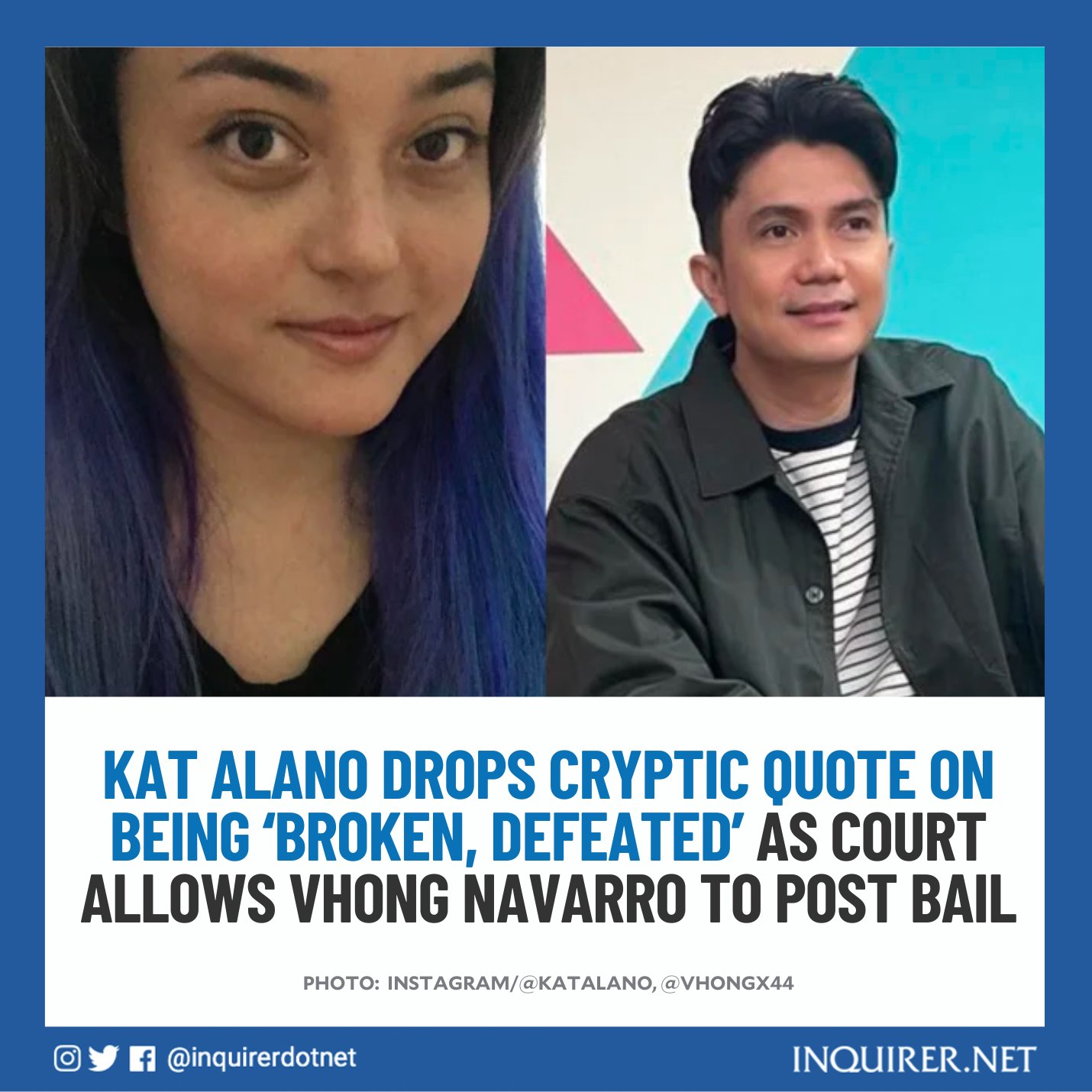 Inquirer on X: "Kat Alano spoke about feeling “broken and defeated” as “evil wins,” after Vhong Navarro was allowed by the Taguig RTC to post a P1 million bail for his temporary