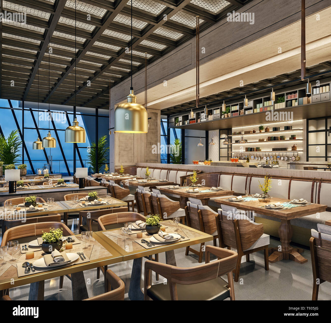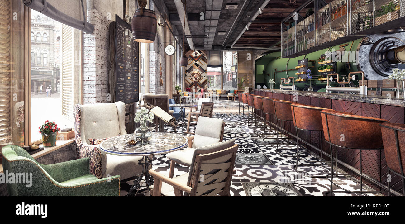 Concept design del ristorante moderno lounge bar 'Stazione Ferroviaria' 3D Rendering Foto stock - Alamy