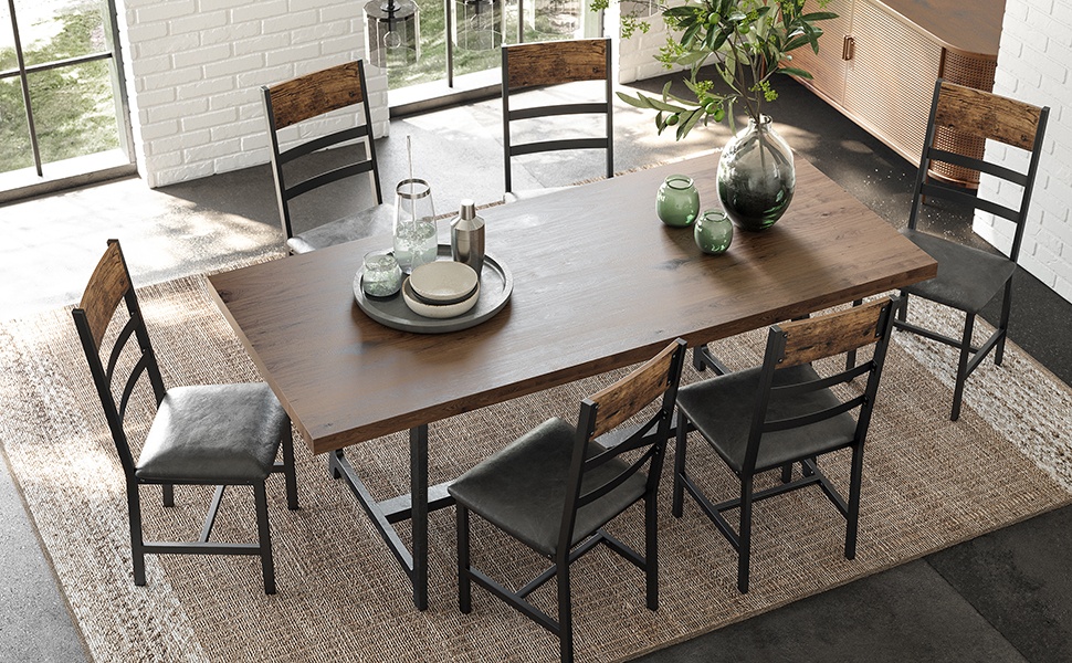 2 Sedie da Pranzo Economiche in Legno Acciaio e Similpelle Stile Industriale