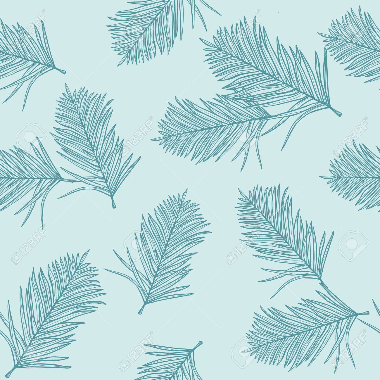 SVG, Vettoriale - Modello Senza Cuciture Con Foglie Di Palma Tropicale, Sfondo Azzurro. Illustrazione Del Fogliame Della Giungla. Piante Esotiche. Disegno Floreale Della Spiaggia Di Estate. Natura Paradisiaca. Image 132554338