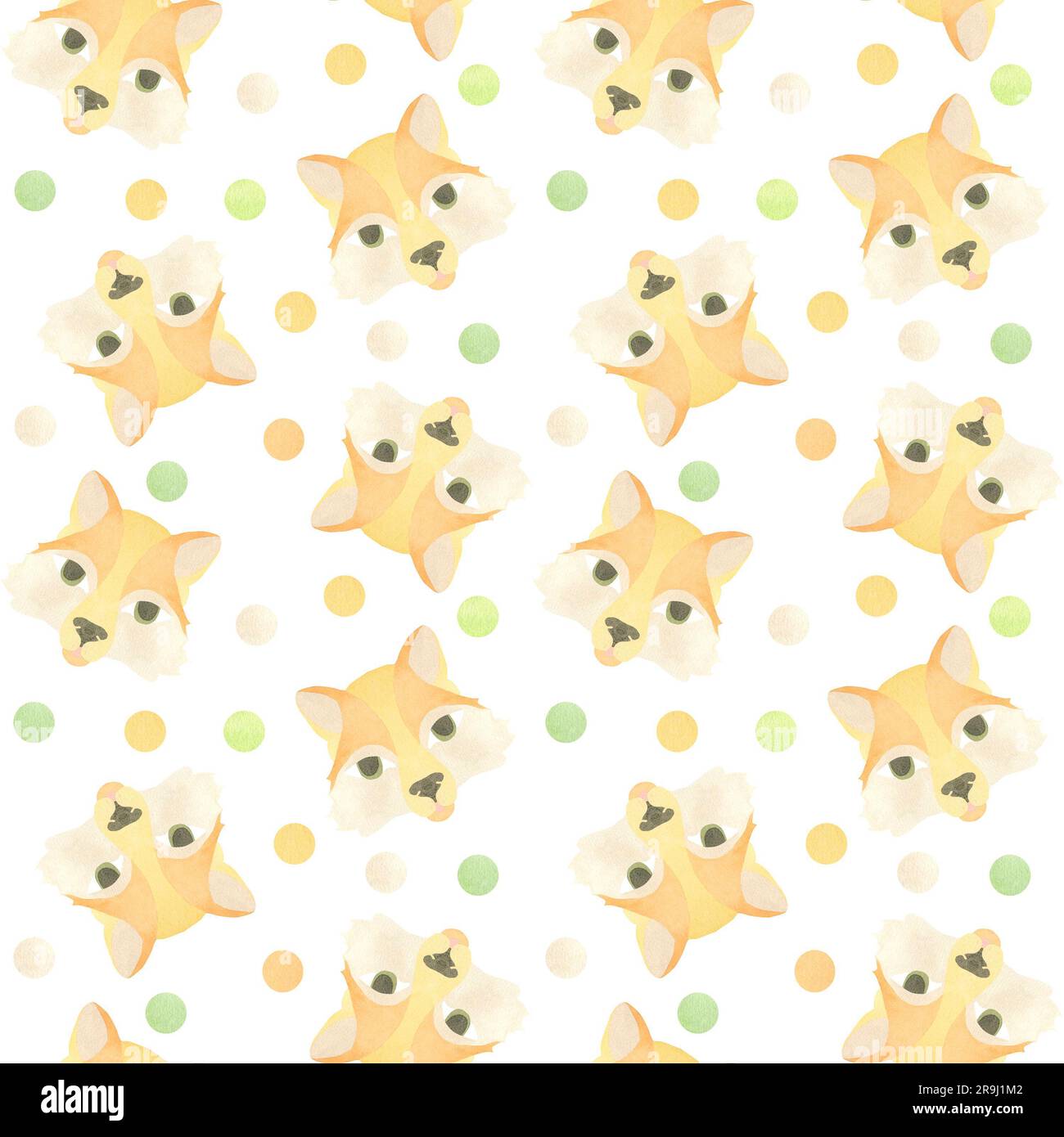 Modello senza cuciture con visi di volpe divertenti e cerchi colorati. Illustrazione acquerello evidenziata su sfondo bianco. UNA SERIE DI FACCE ANIMALI. Adatto Foto stock - Alamy