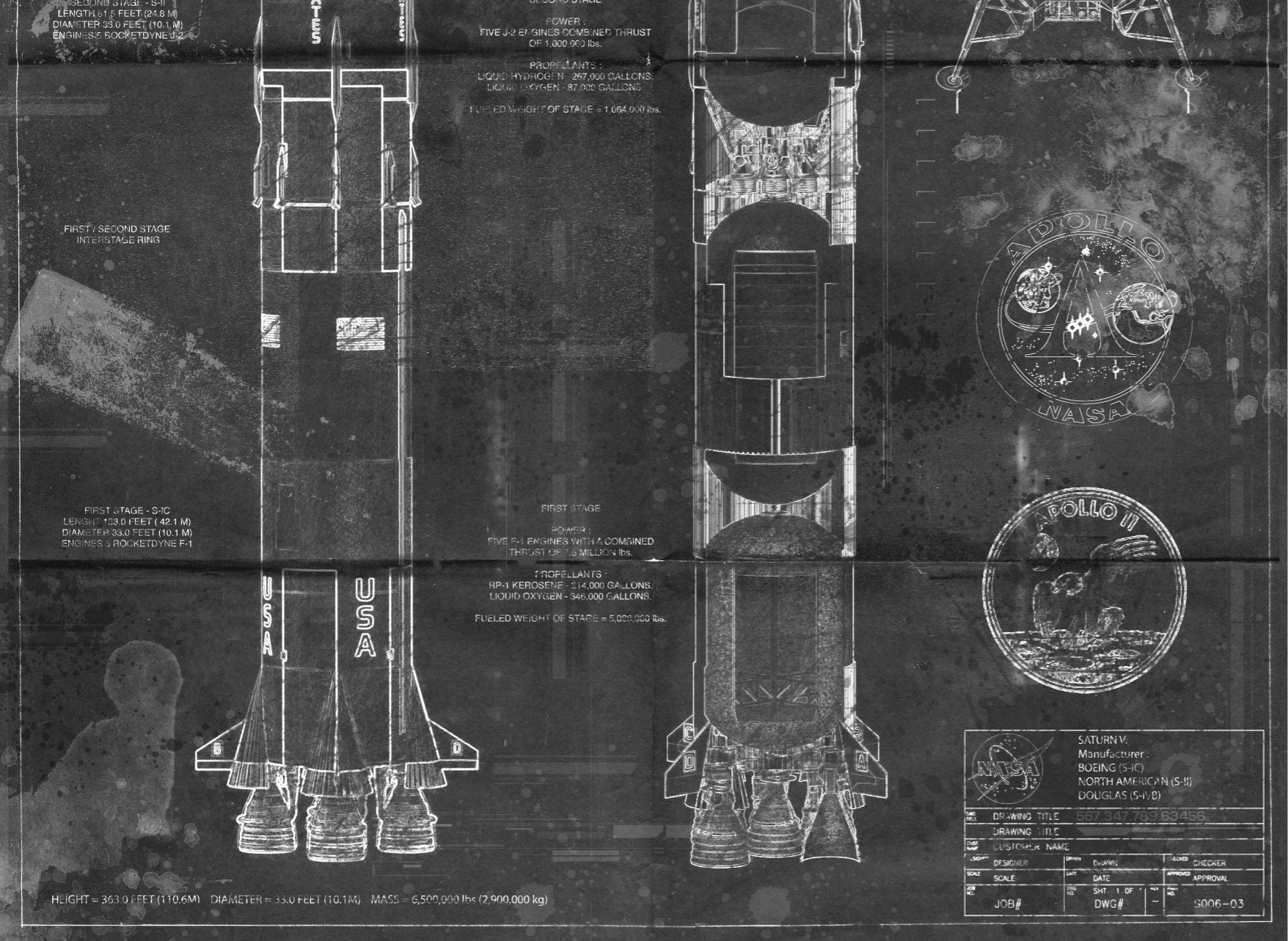 Saturn 5 / Apollo 11 Schematic - Etsy