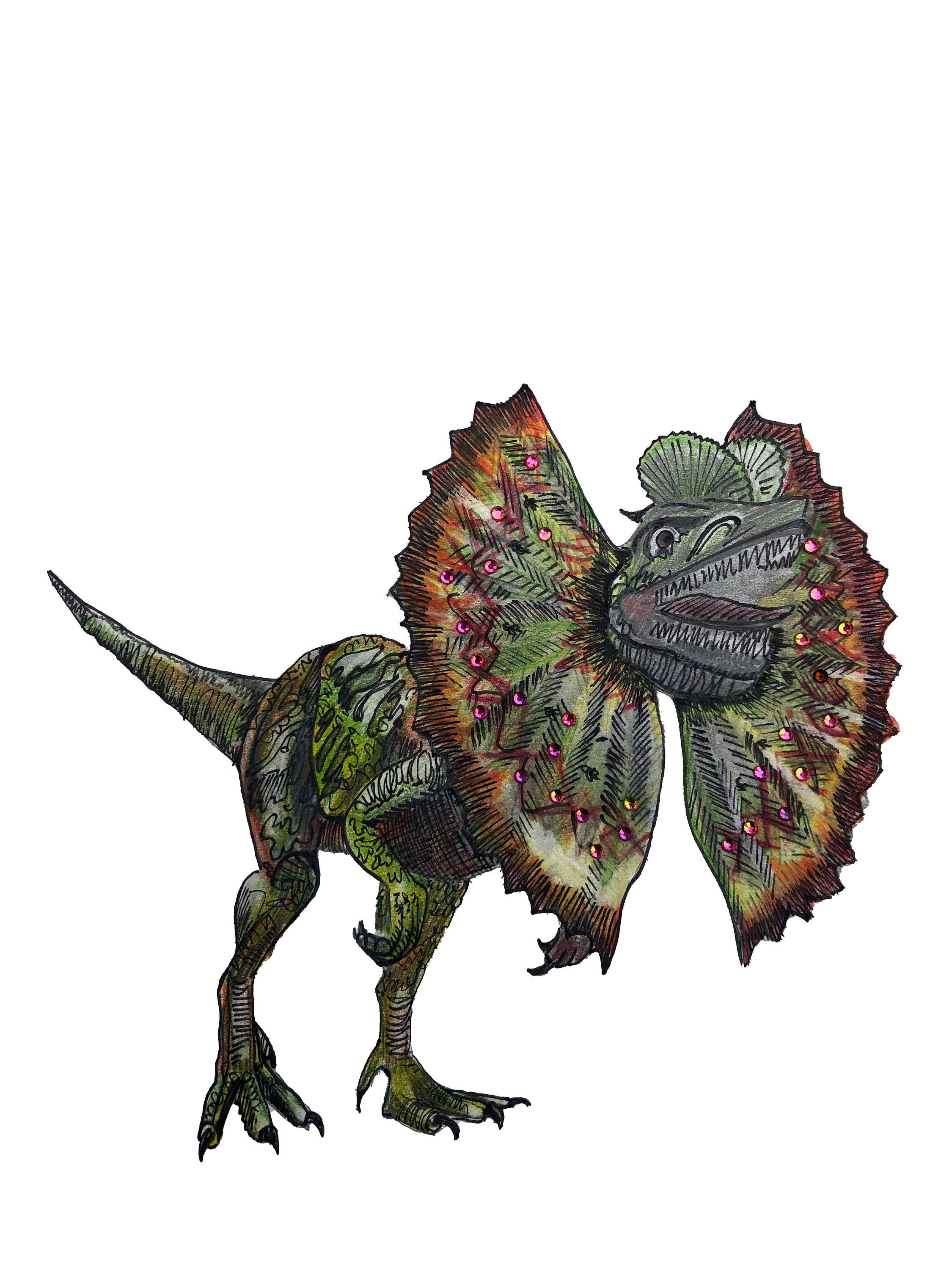 Dinosaur print with eye catching gems. This Dilophosaurus high quality giclee print comes with a white mount and embellished with fabulous sparkly ...