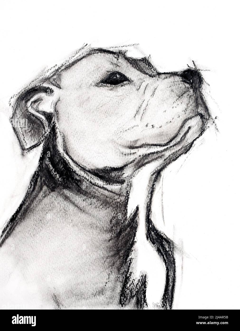 Pit Bull Terrier disegno bianco e nero con un carbone. Grafica scansionata di un cane Foto stock - Alamy