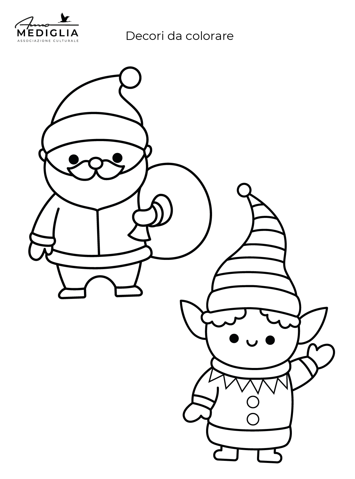 Disegni di Babbo Natale, renne ed elfi da colorare e stampare