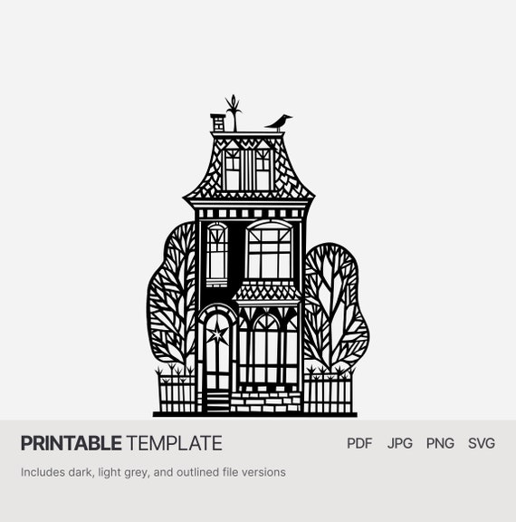 Piccola casa vittoriana con un uccello sul tetto PDF SVG JPG Modello di taglio di carta - Etsy Italia