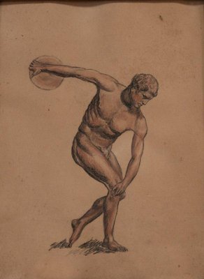 Discobolos, 1930s, Charcoal & Sanguine Drawing, Framed for sale at Pamono
