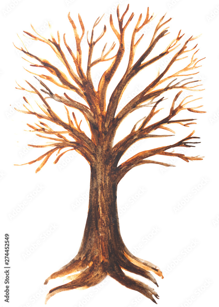 Disegno di un albero con le radici acquerello sfondo bianco Stock-Illustration | Adobe Stock
