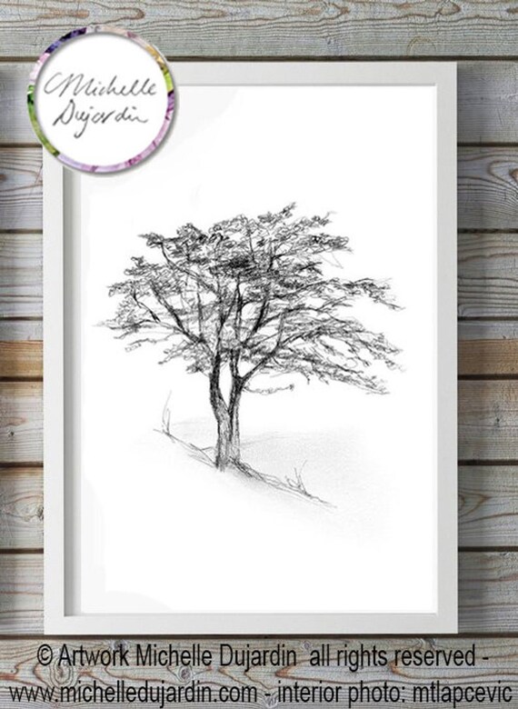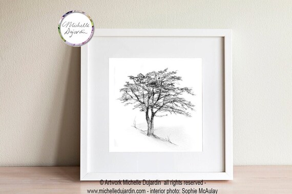 Albero sul pendio, disegno di un albero, stampa giclee, albero sulla collina, albero da disegno a matita, Michelle Dujardin, albero da disegno Zen - Etsy Italia