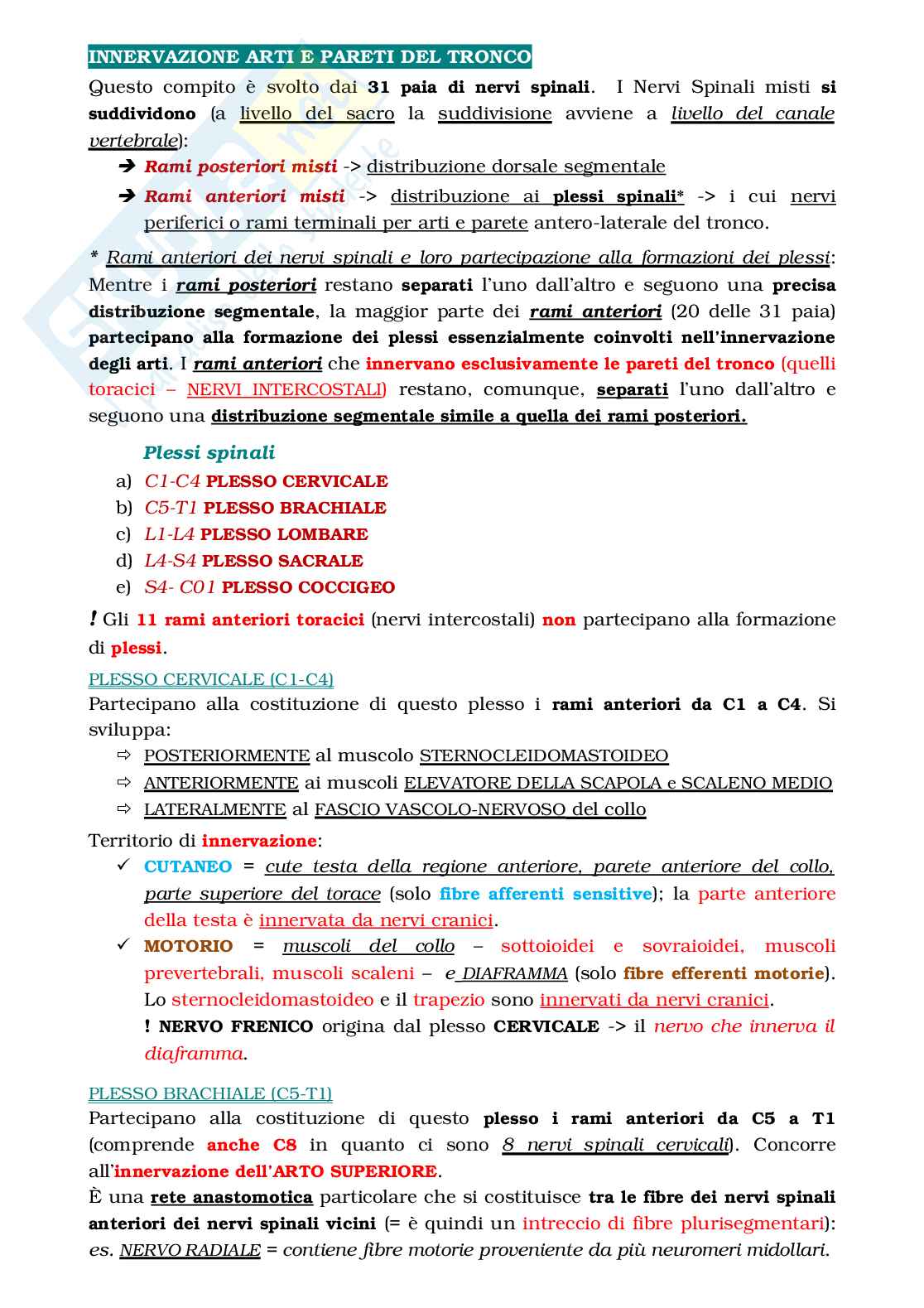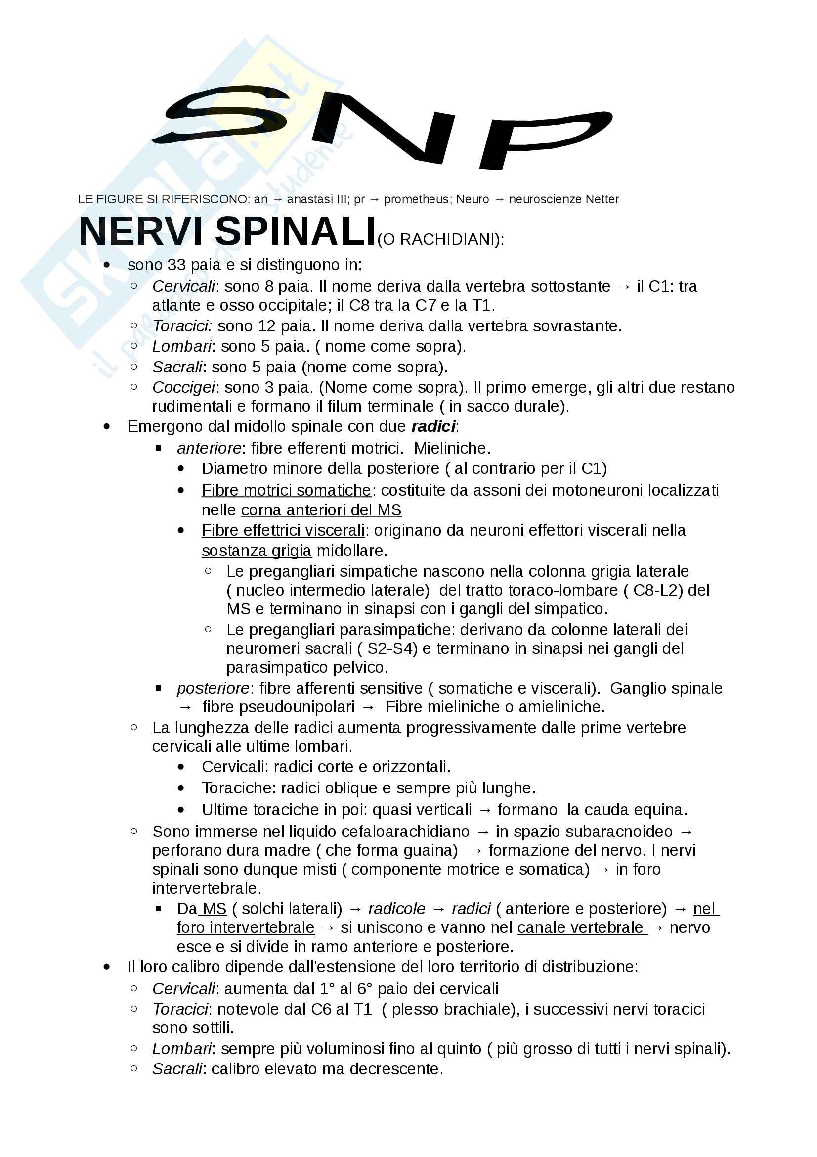 Sistema nervoso periferico e nervi spinali: Appunti di Neuroanatomia