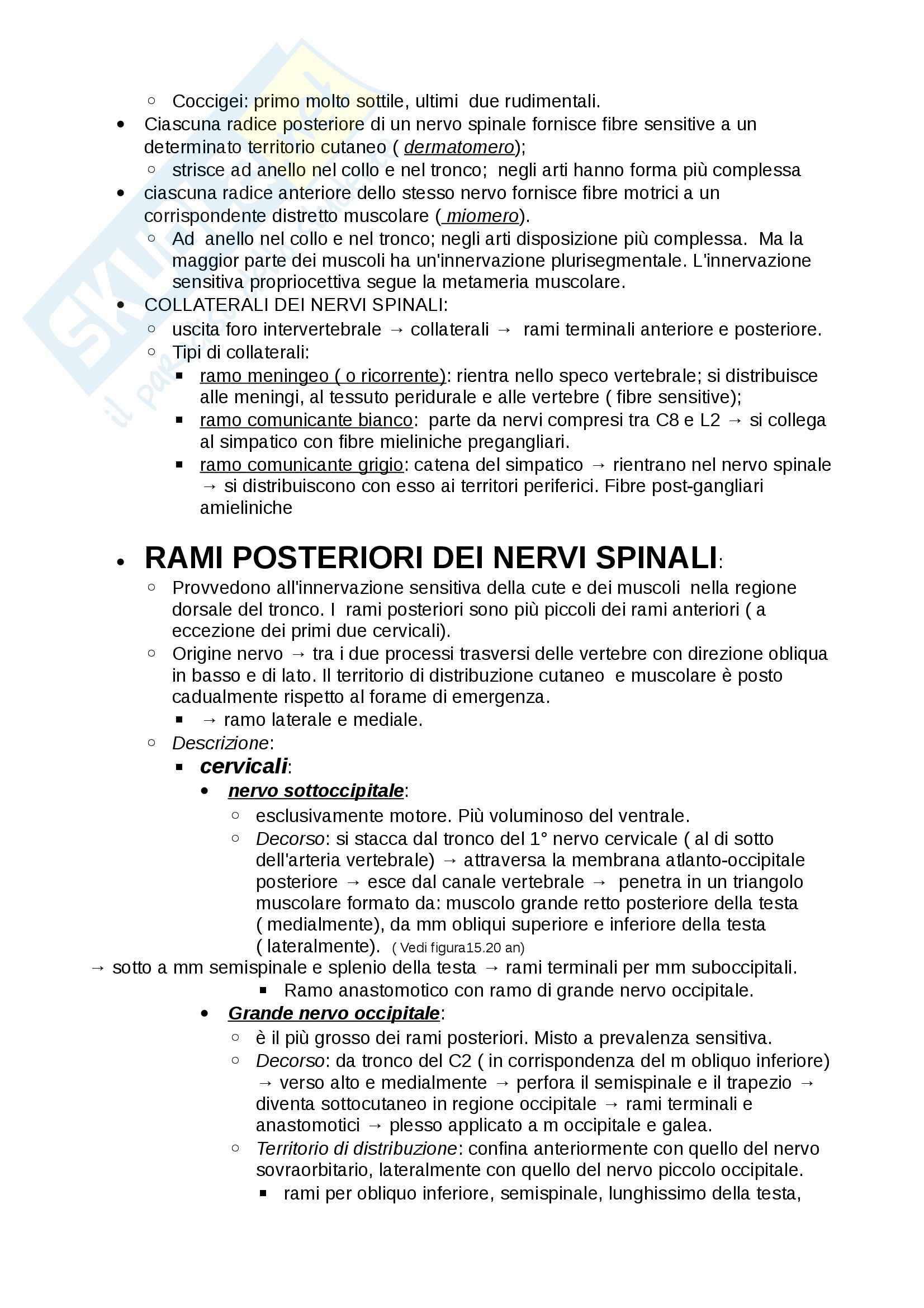 Sistema nervoso 3 - appunti - MIDOLLO SPINALE E NERVI SPINALI La superficie dorsale presenta un - Studocu