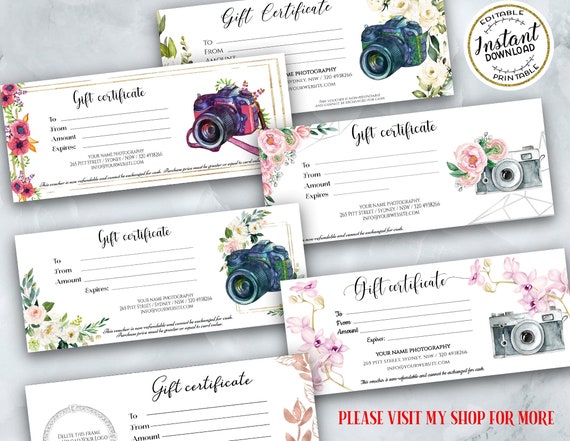 Photography Gift Certificate Template, Gift Voucher Printable Template, Gift Card Download for Customers - Etsy