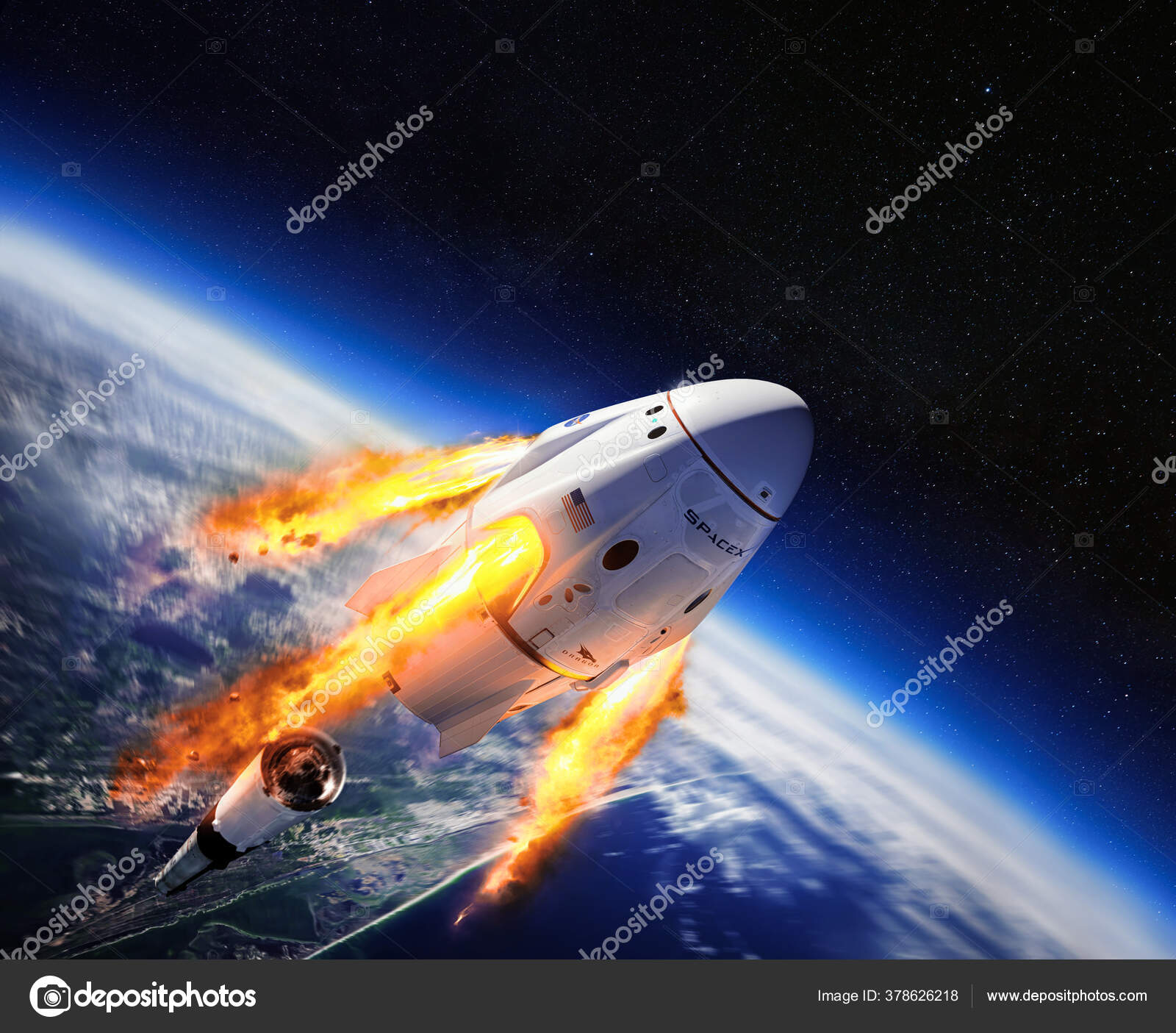 Nueva York, Estados Unidos - 31 De Mayo De 2020: Nave Espacial Crew Dragon Cargo En Órbita Terrestre. Spacex Fotos, retratos, imágenes y fotografía de archivo libres de derecho. Image 148370551