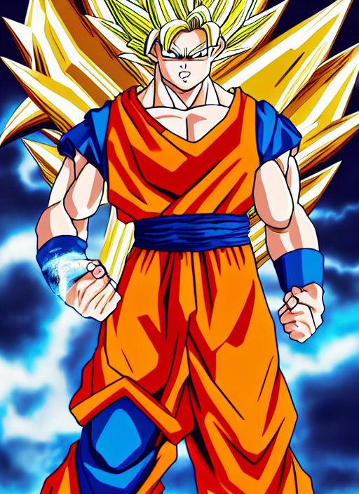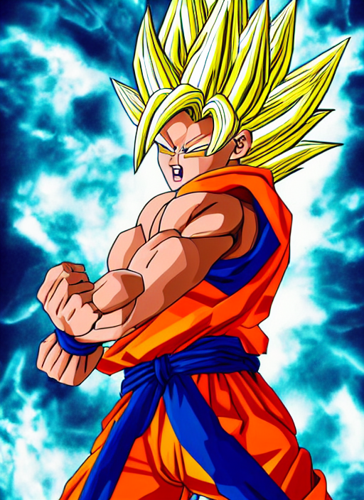 Prompthunt: a full portrait photo of super saiyan son goku, f / 2 2, 3 5 mm, 2 7 0 0 k, lighting, perfect faces, award winning photography.